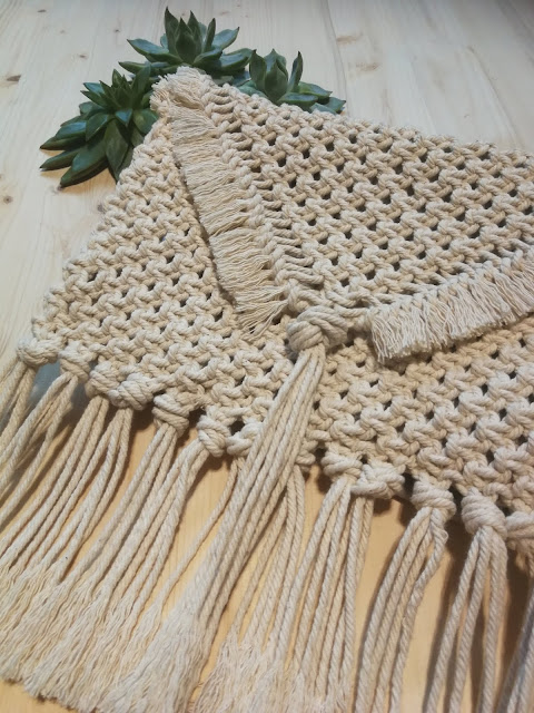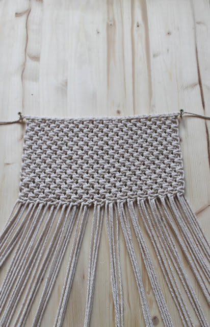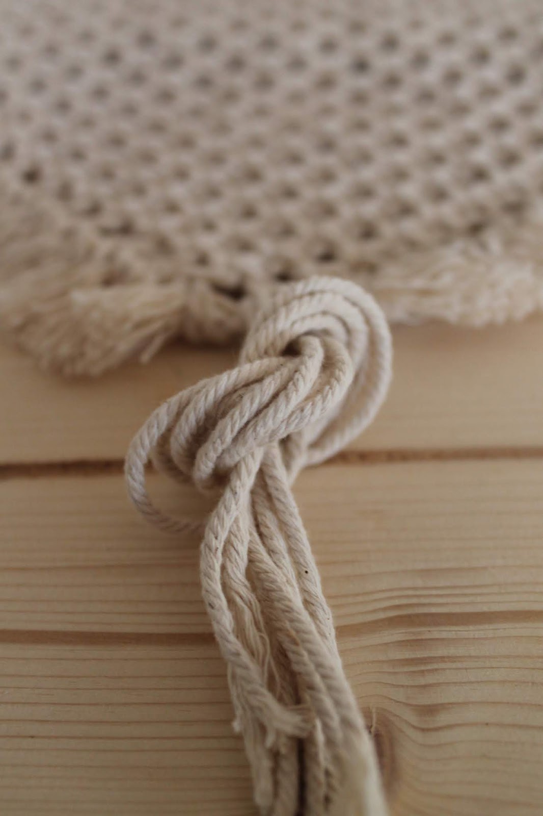 Vor ein paar Wochen habe ich einen kleinen Wimpel geknotet mein erstes Makramee, simpel und easy mit drei unterschiedlichen Knoten. Ein echtes Anfängerprojekt und innerhalb einer Stunde fertig….ich hatte also mein kleines Erfolgserlebnis und schon wenig später die Idee für meine Makramee Tasche.