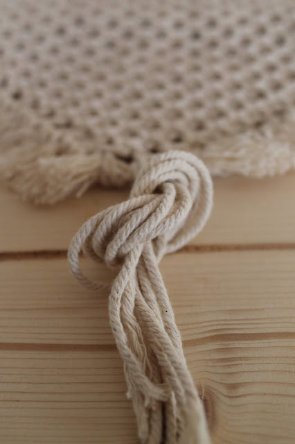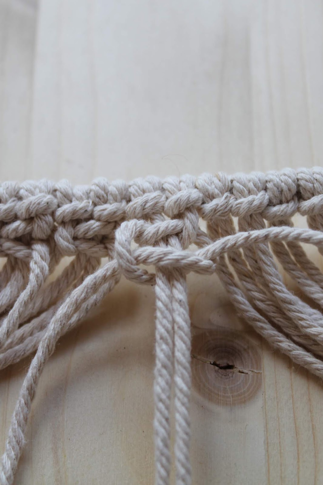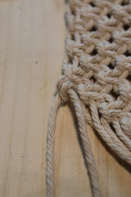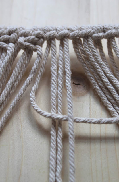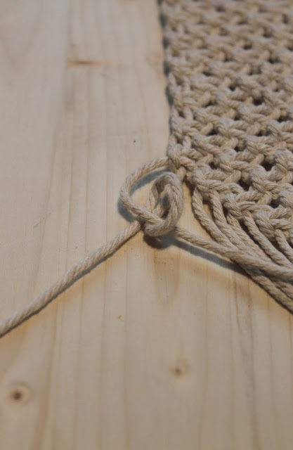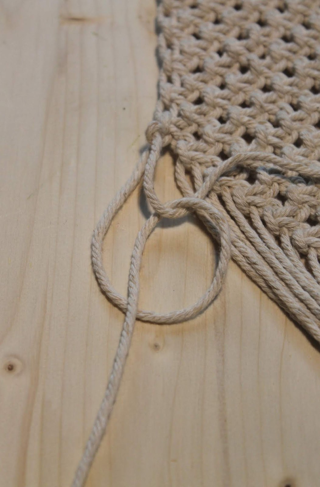 Für meine Tasche habe ich 32 umgedrehte Lerchenkopfknoten gemacht.