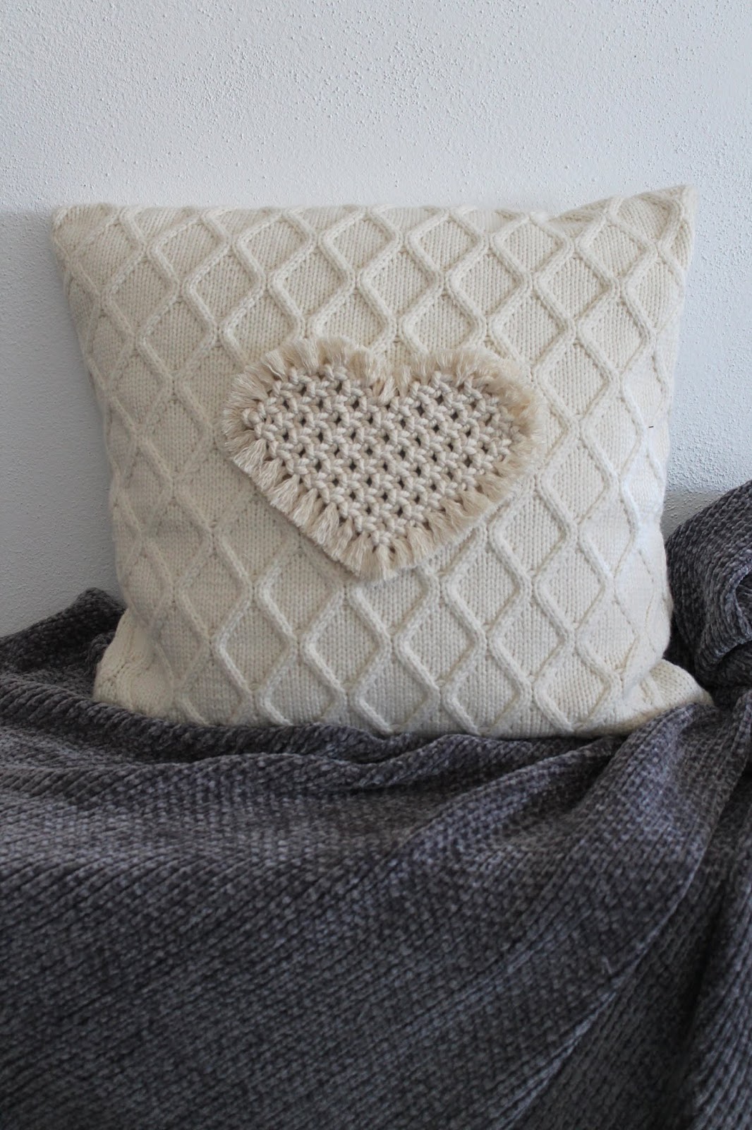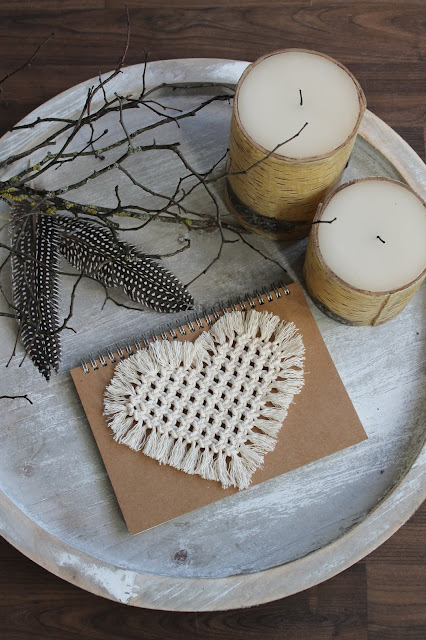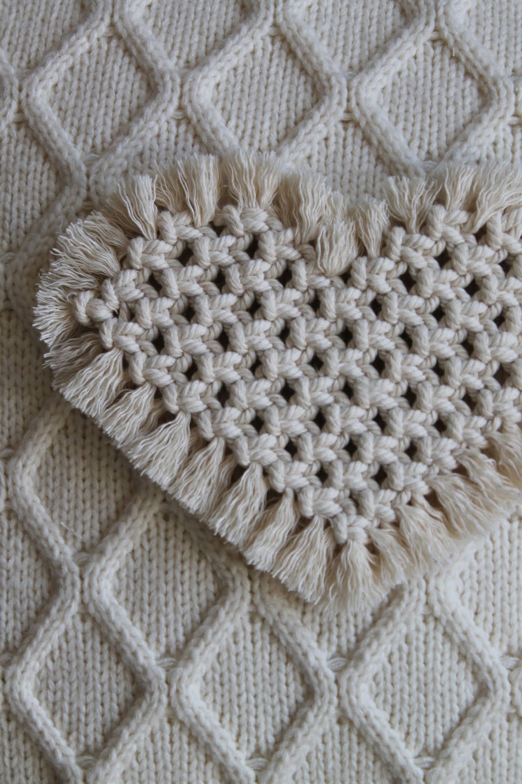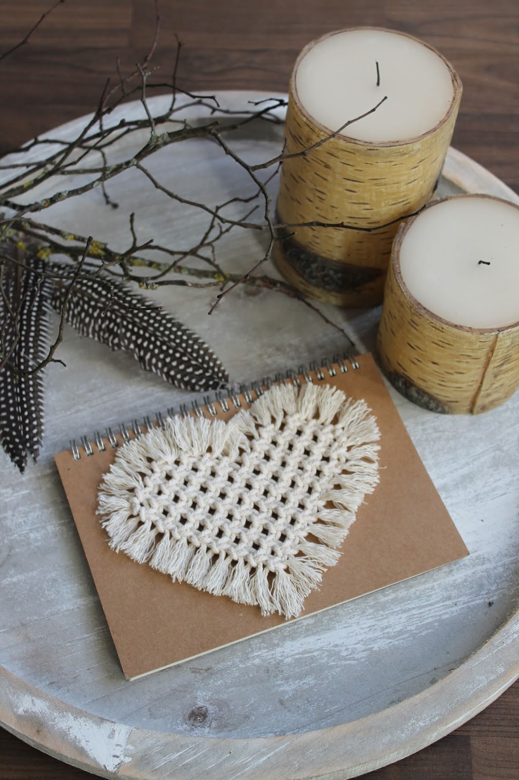 Auf ein kleines Notizbuch geklebt oder als Applikation auf einer Kissenhülle schaffen Makramee-Herzen Kuschelatmosphäre.