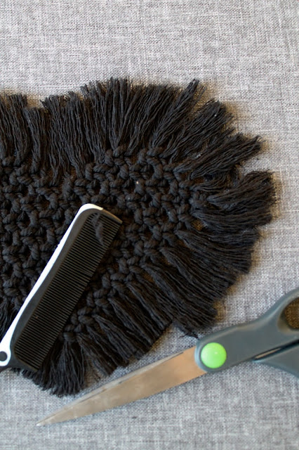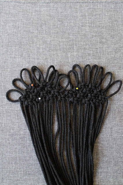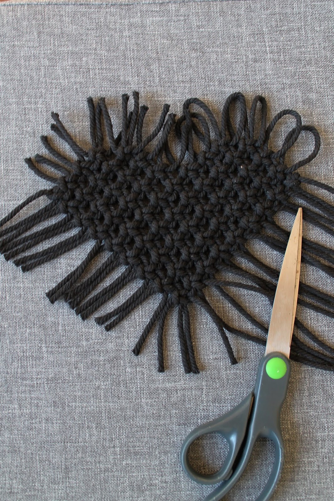 Anschließend die Garnenden abschneiden und die Schlaufen mittig durchtrennen.