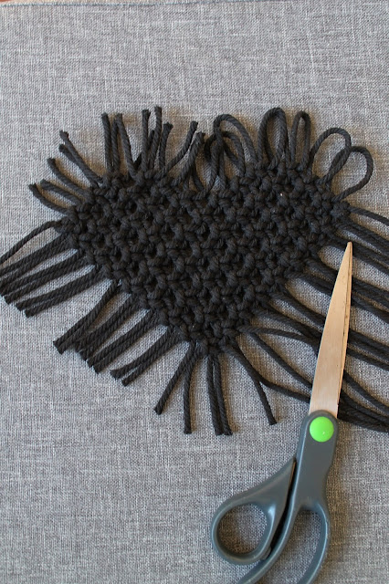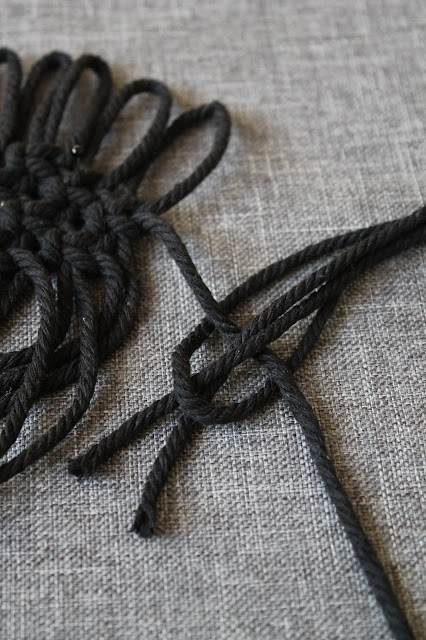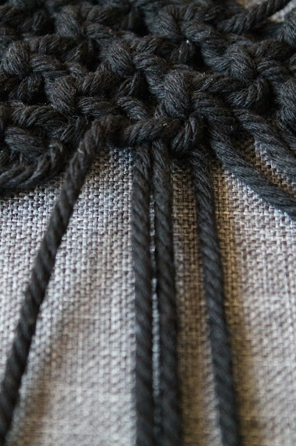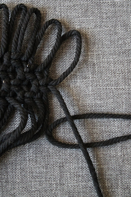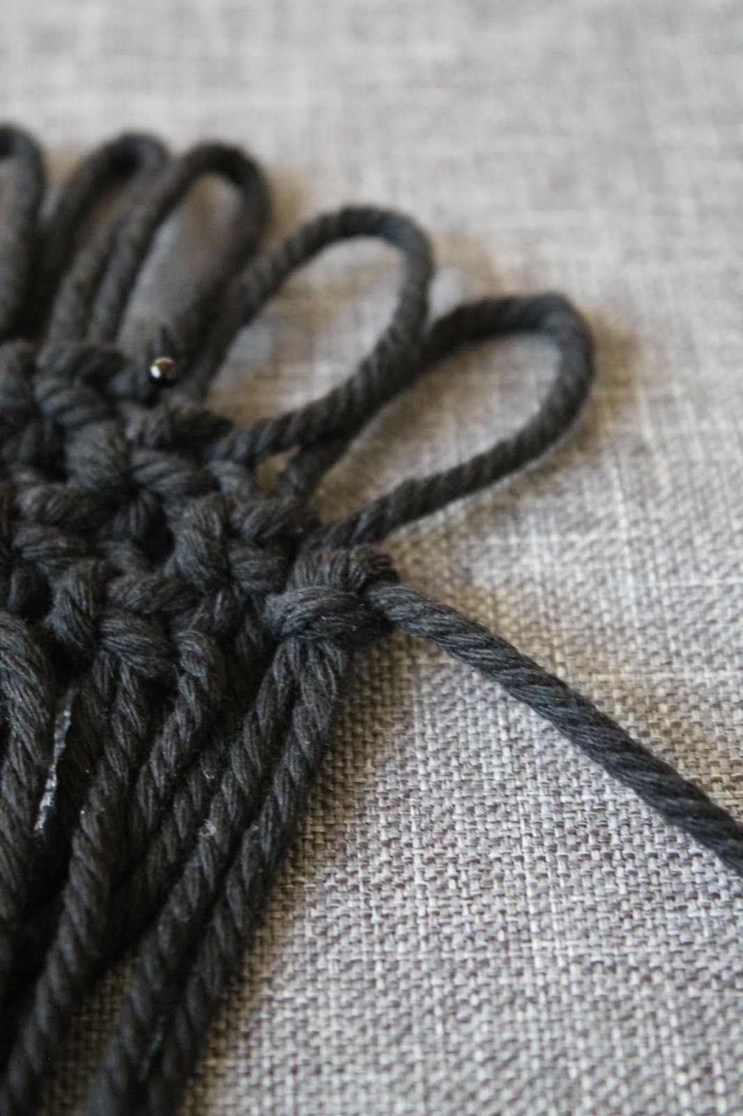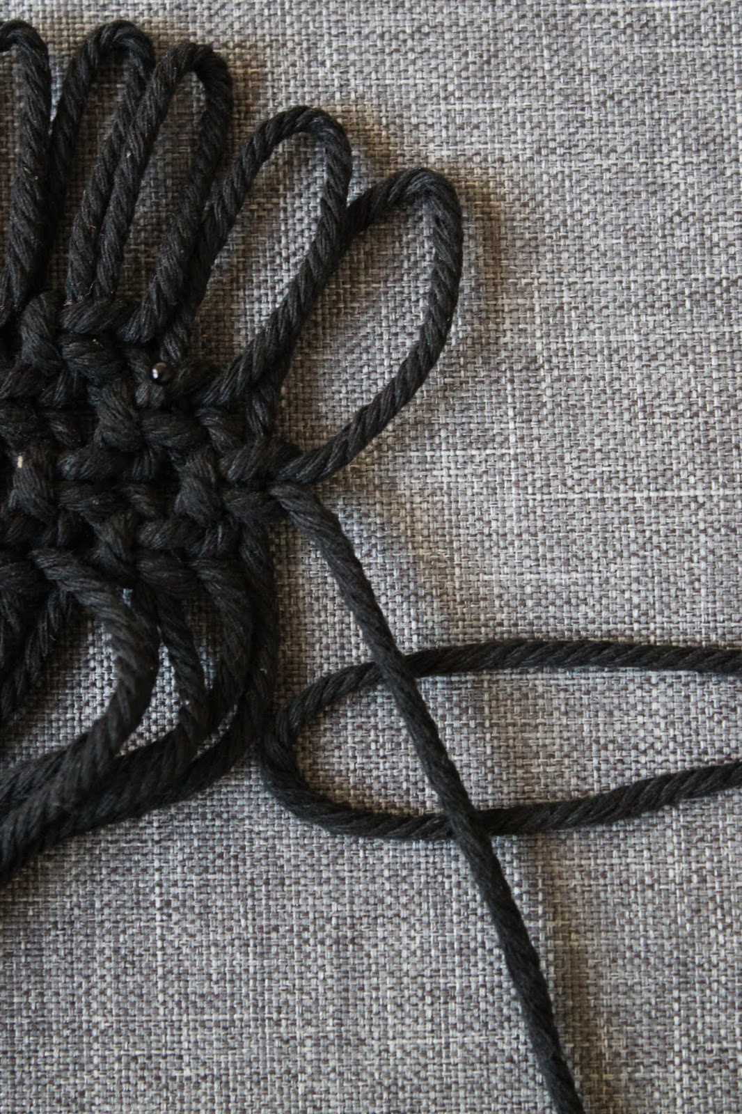 Für eine alltagstaugliche Applikation auf einem Kissen empfehle ich 3 mm Makramee-Garn. Hier kann der Kreuzknoten fester geknüpft werden,