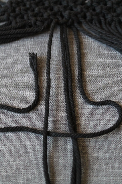 Die Garnlänge pro Faden bei 4 mm ist 1,20 m und bei 3 mm 1,00 m, der dann doppelt gelegt wird. Die Garnlänge ist großzügig bemessen, so kann im Nachhinein die Fransenlänge individuell bestimmt werden.