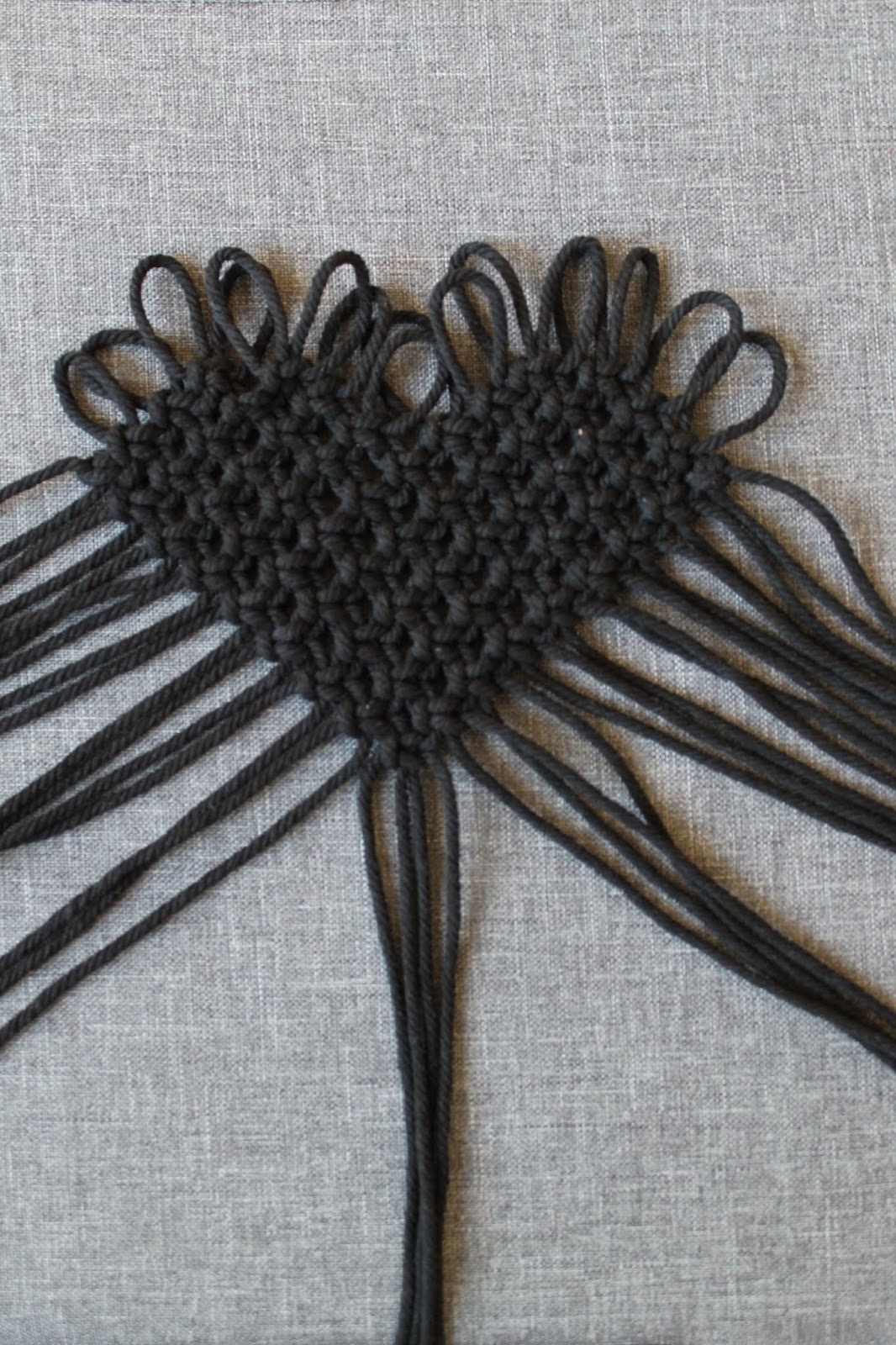 Mit 3 mm wird das Makramee-Herz 17 cm breit und mit 4 mm Makramee-Garn