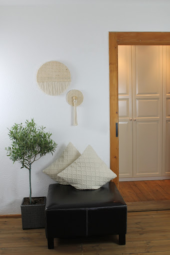 Wiener Geflecht wird zurzeit gefeiert, aber eigentlich war es niemals out. Das Geflecht steht für Nachhaltigkeit, Natürlichkeit und lässt sich vielseitig verarbeiten. Unterschiedliche Materialien können mit Wiener Geflecht kombiniert werden und wirken dadurch besonders spannend, wie bei meiner Wanddekoration mit Makramee Garn. Ein absoluter Stilmix.