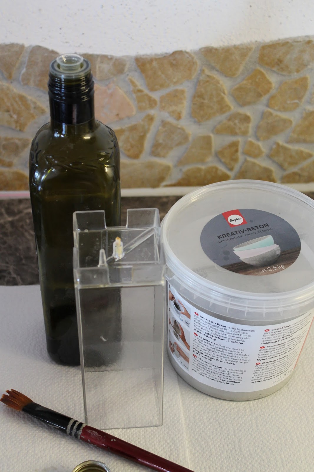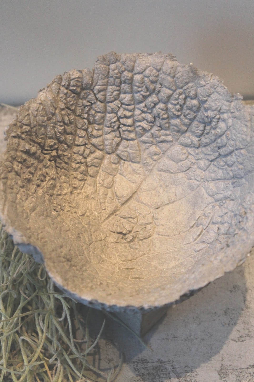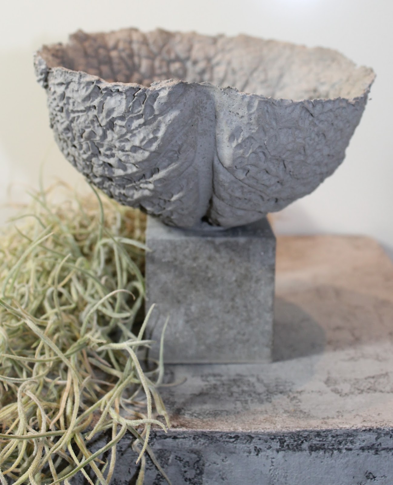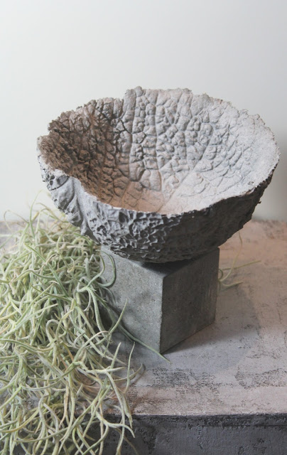 Die Schale ist aus Knetbeton gefertigt und der Sockel mit Beton.