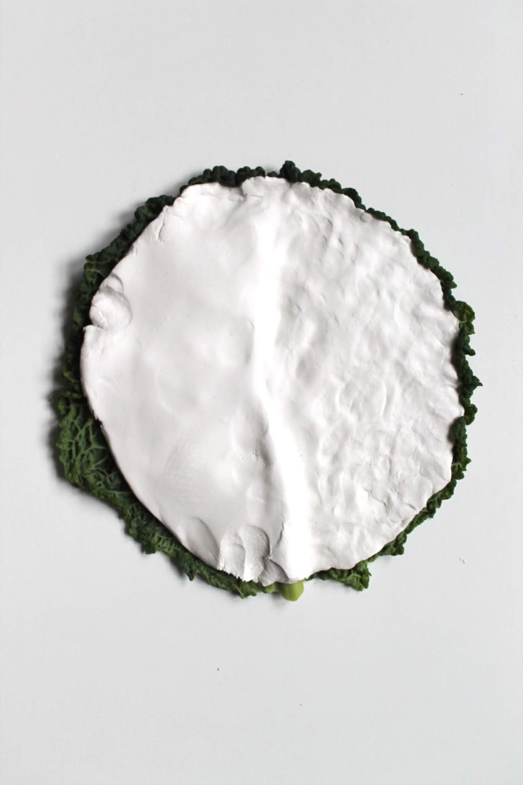 Das abgeformte Wirsingblatt in eine flache Schale zum Trocknen legen.